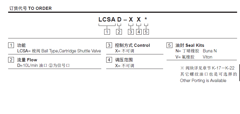 工作压力350Bar流量请查看《压力-流量曲线图》插孔SUN T-11A过滤参考《油液清洁度》内泄漏5 drops/min(滴/分). max. at 350bar温度-40°F to +250°F(-40°C to +120°C)油液Mineral-based fluids with viscosities of 7.4 to 420 cSt.(矿物油粘度)阀块材料钢和球铁允许使用最大压力350bar -