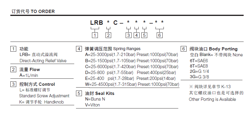 B:25psi (1.7 bar) to 1500psi(105 bar), preset预设定:1000psi(70 bar)