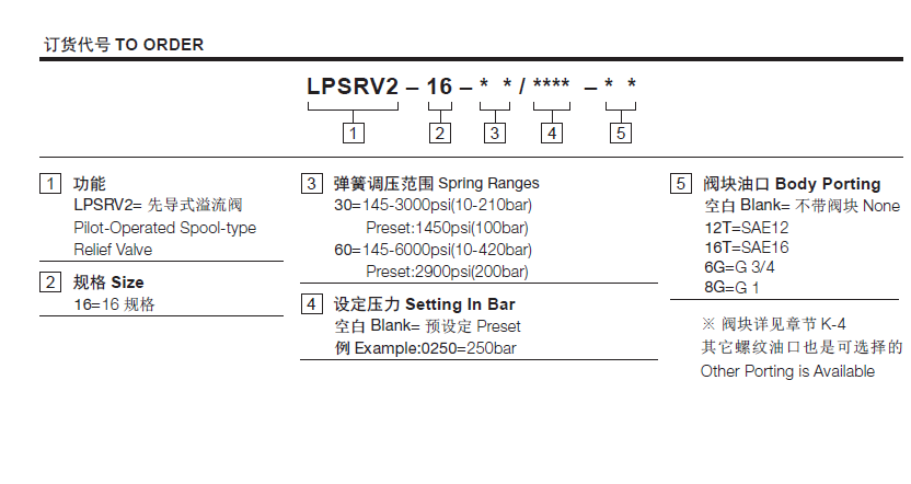 阀体①口和②口不通, 直到①口压力超过设定压力且打开先导阀芯。这样, 先导阀芯