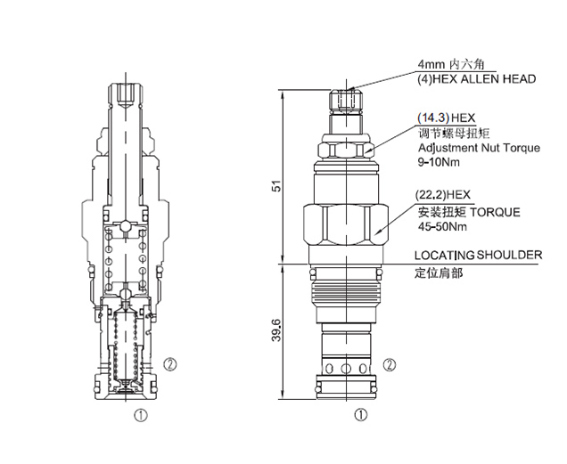 压力超过口②压力,阀就会一直保持打开状态。仅在油口① 的压力低于阀的设定压力