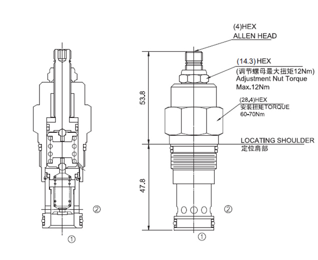 统平稳性。当①口压力超过阀的设定时,①口到②口溢流过载,限制系统压力升高,